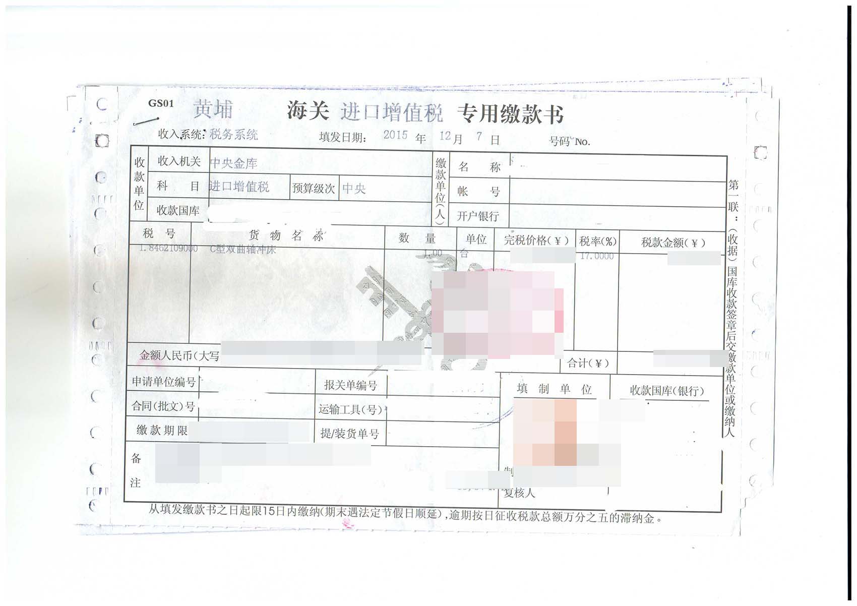 三、沖床進(jìn)口報(bào)關(guān)案例展示