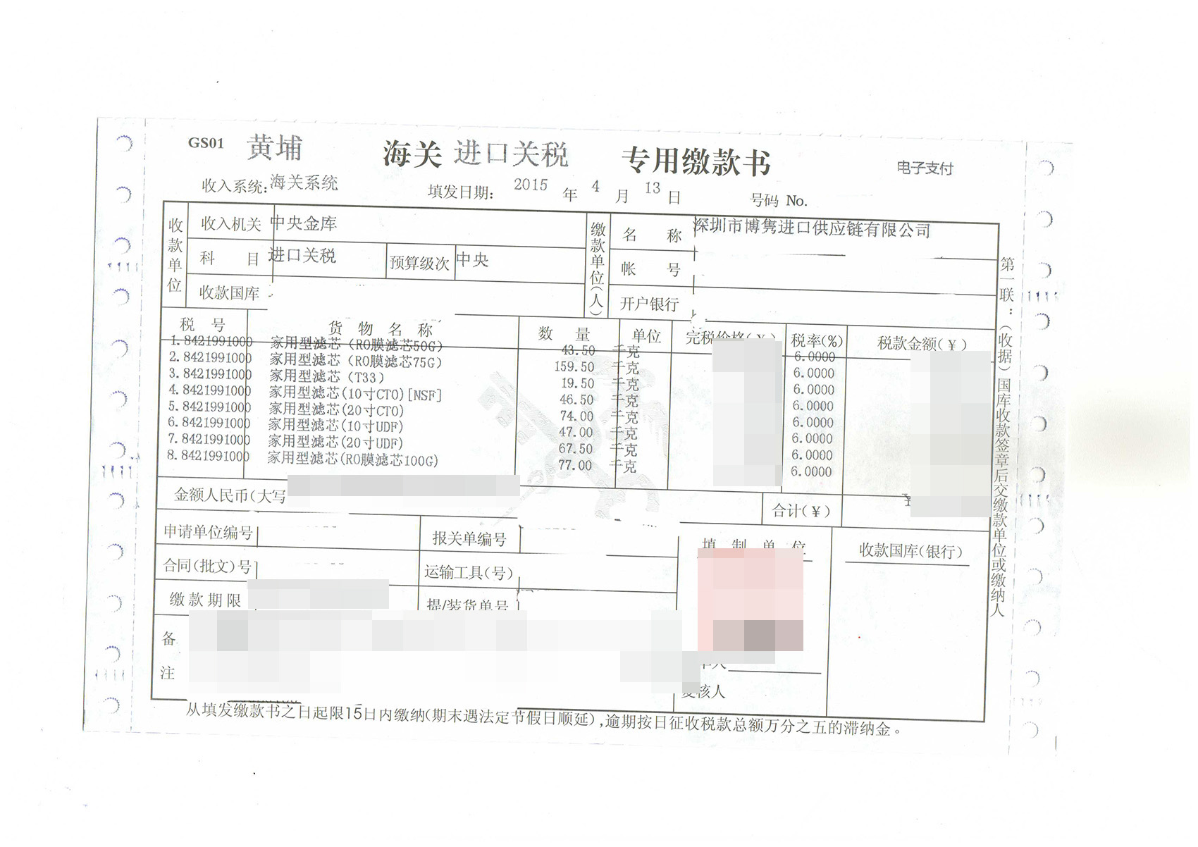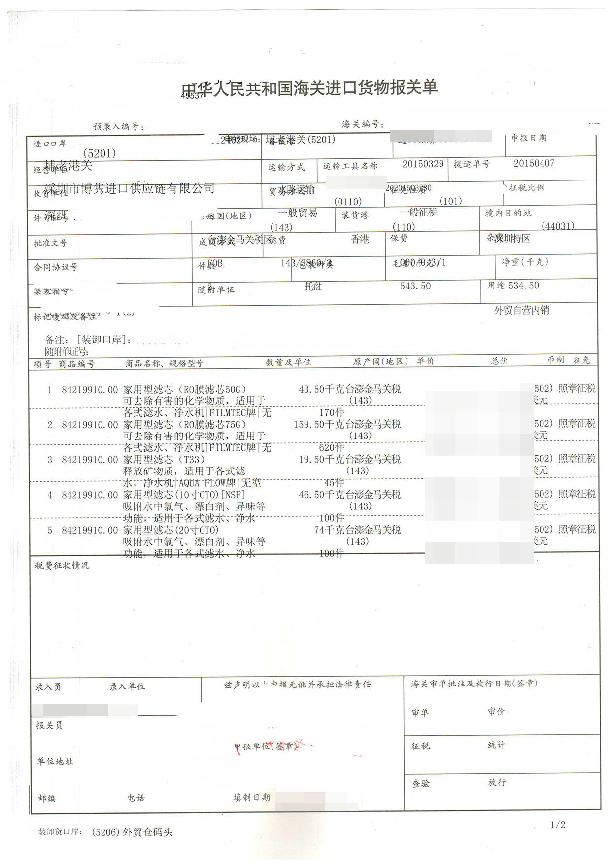 - 濾芯進(jìn)口報(bào)關(guān)案例