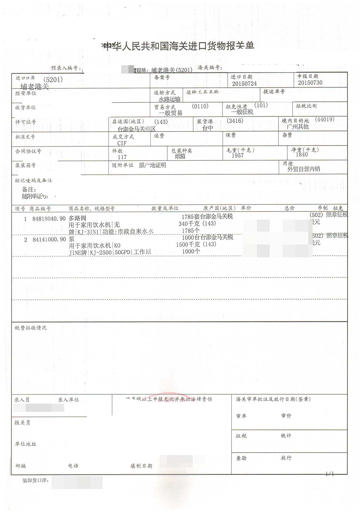 三、閥門進口報關(guān)案例展示
