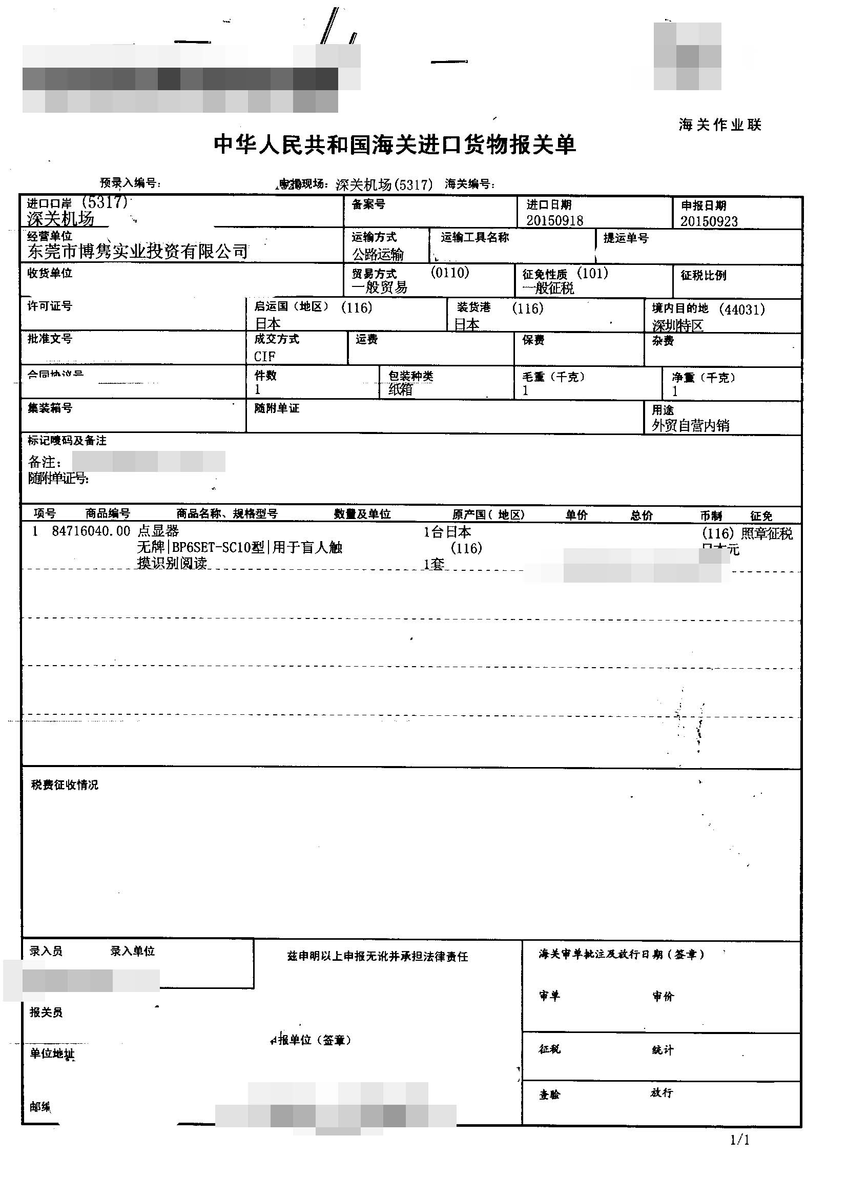 一、點(diǎn)顯器進(jìn)口報(bào)關(guān)手續(xù)資料