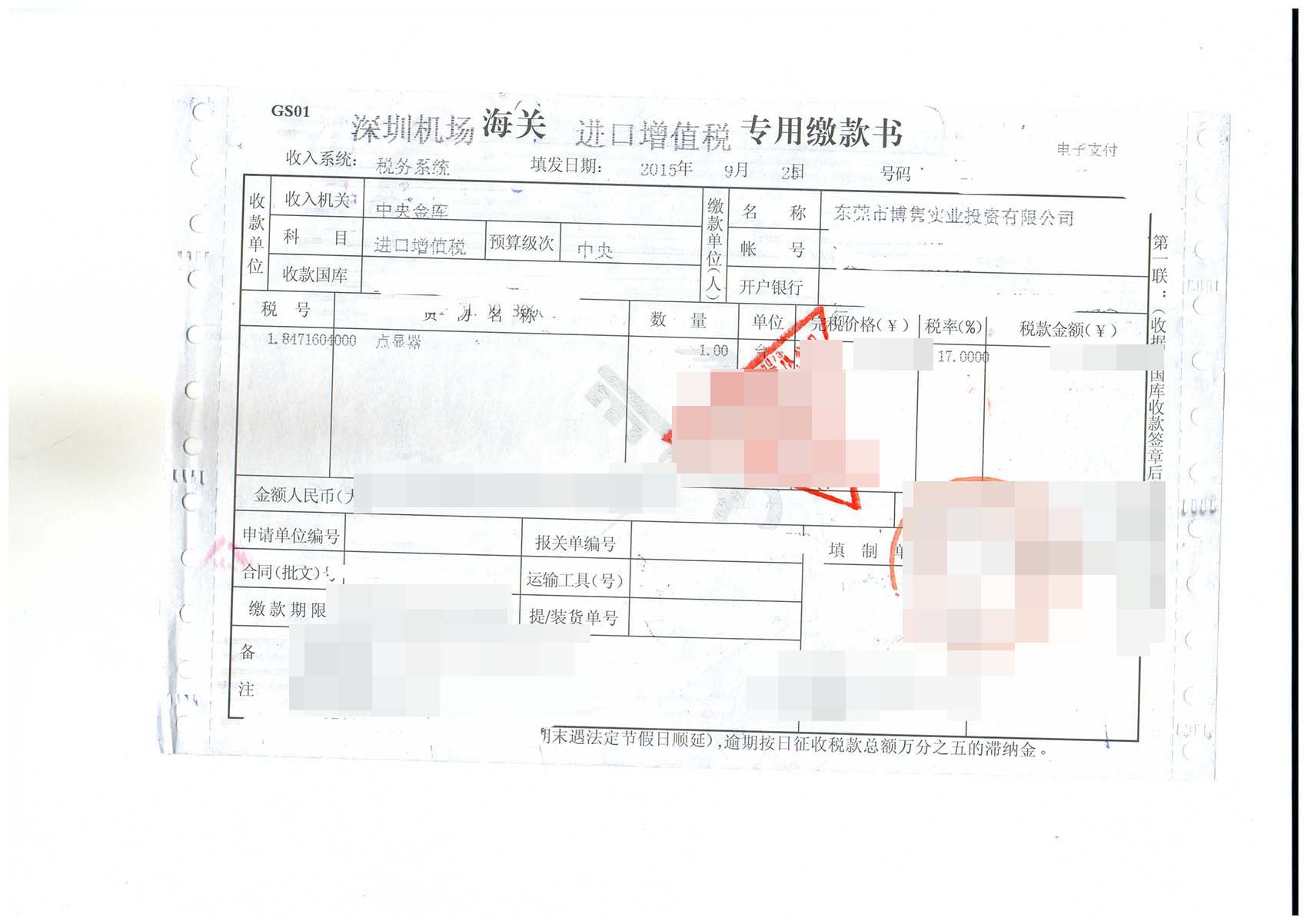 進(jìn)口日期:20150918客戶:東莞市松山湖某產(chǎn)業(yè)發(fā)展有限公司