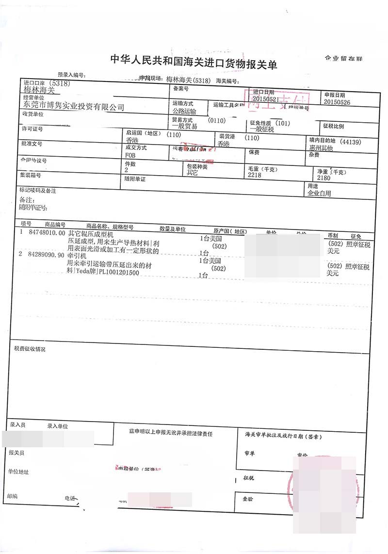三、成型機進口報關(guān)案例展示