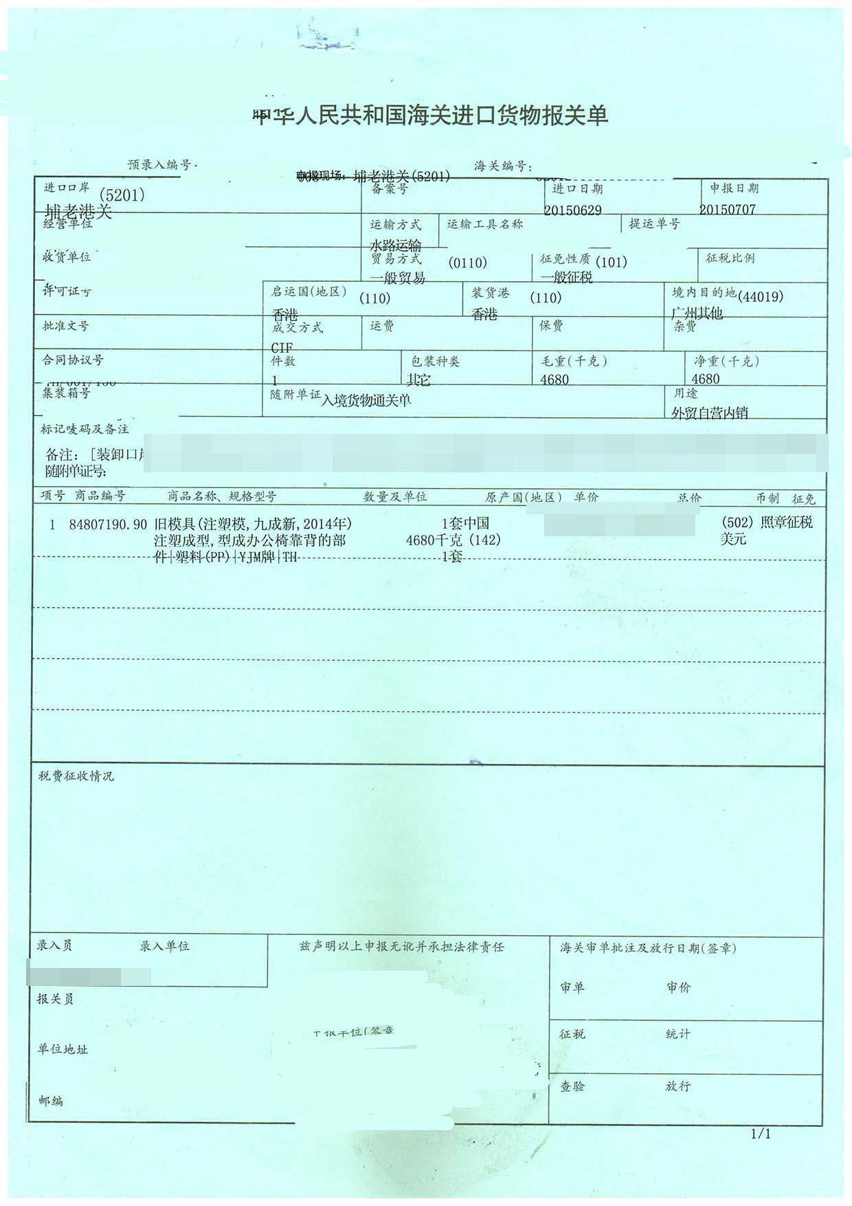 四、舊模具進(jìn)口報(bào)關(guān)案例展示