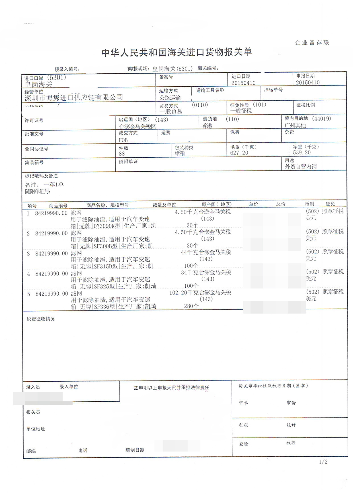 三、濾網(wǎng)進(jìn)口報(bào)關(guān)案例展示