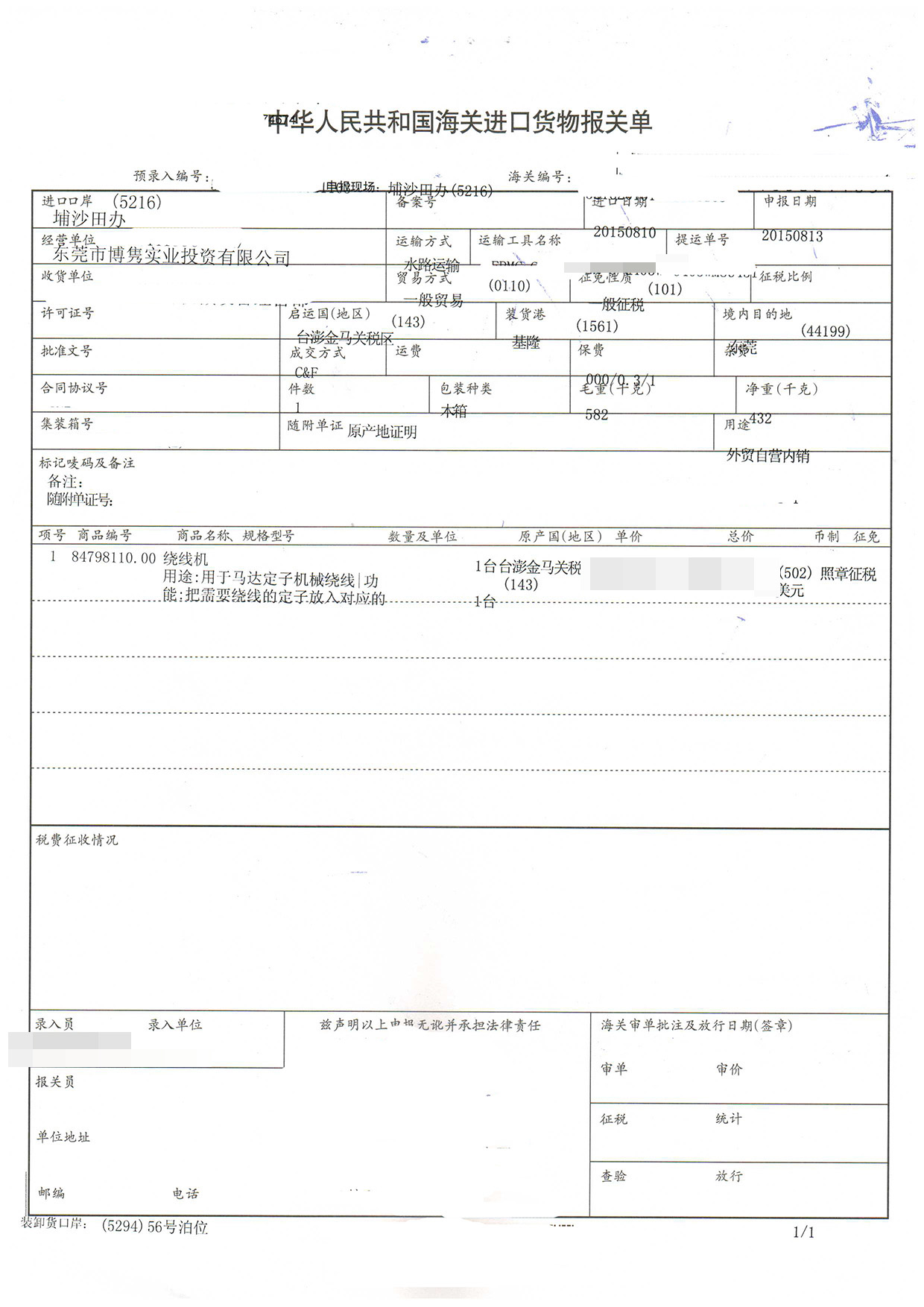 進(jìn)口日期:20150810