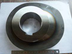 上面圖片中的凸輪為冷鍛機(jī)轉(zhuǎn)動軸上的一個(gè)零件,冷段機(jī)將電機(jī)動力傳動至齒輪,齒輪轉(zhuǎn)動時(shí)帶動安裝在轉(zhuǎn)動軸上的凸輪,當(dāng)凸輪轉(zhuǎn)到高位時(shí)將動力傳遞到推動桿上用來將產(chǎn)品頂(通)出。