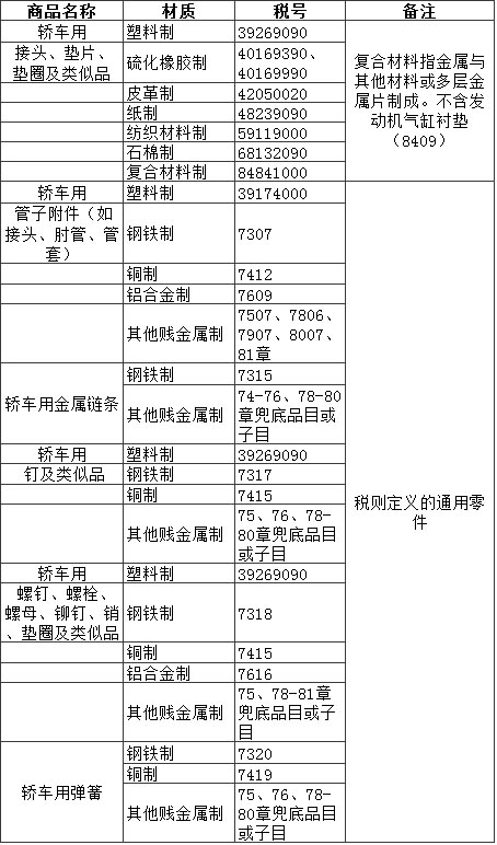 轎車零部件的歸類有其法律依據(jù),那就是非著名的《稅則》十七類注釋二、三。