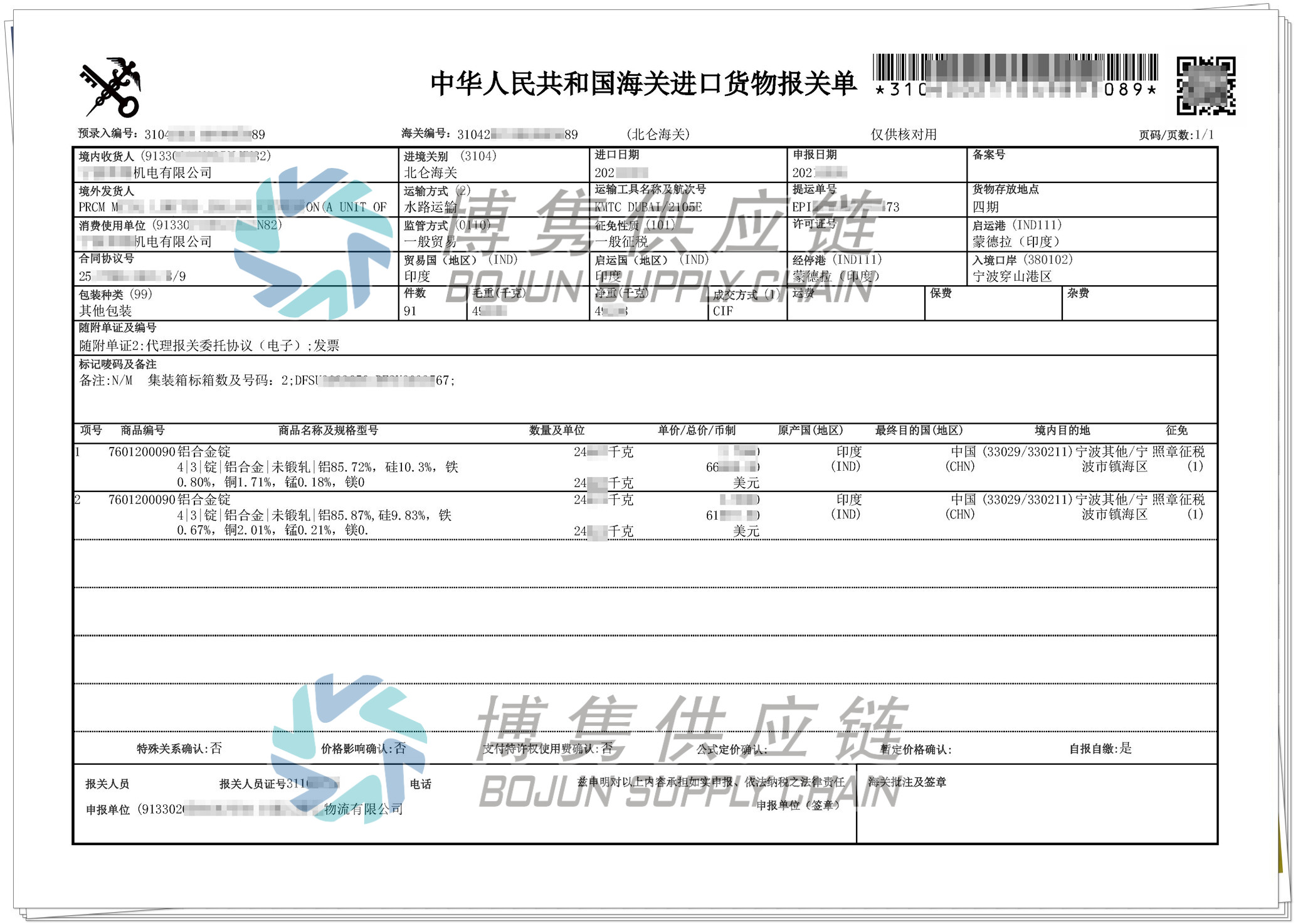 1、博雋供應(yīng)鏈對(duì)再生金屬(再生銅、鋁、鋁錠)有著豐富的進(jìn)口經(jīng)驗(yàn),代理過(guò)多家企業(yè)進(jìn)口。2、所有資料模板博雋皆可提供,減少企業(yè)整理資料的麻煩,省事省心,提高效率。